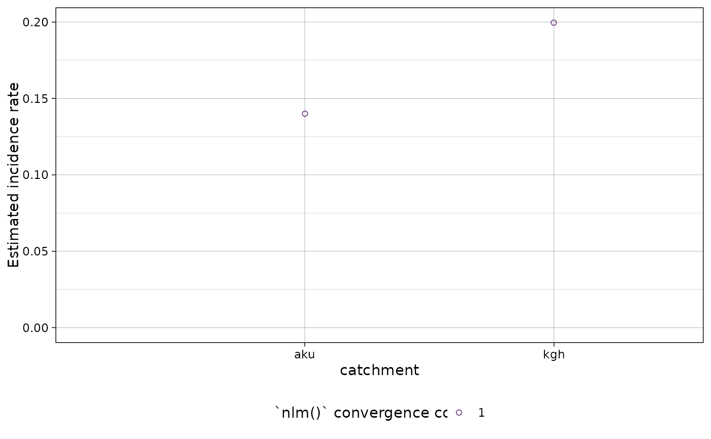 #> To avoid this warning, specify the desired set of stratifying variables in the `curve_strata_varnames` and `noise_strata_varnames` arguments to `est.incidence.by()`.