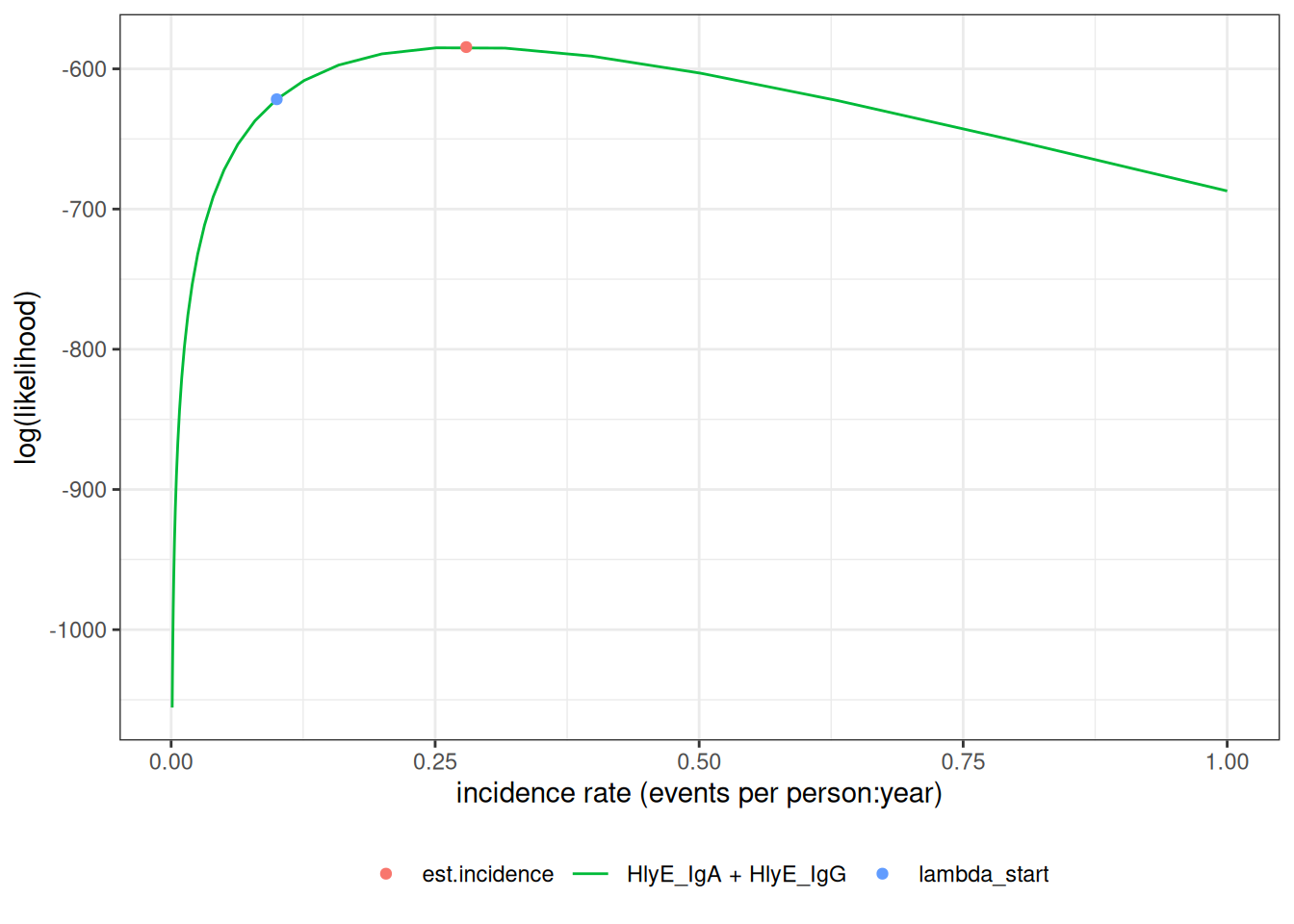 We can calculate the log-likelihood of the data as a function of the incidence rate directly: