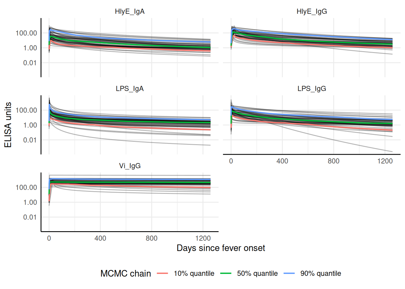 dplyr::filter(iter < 50) # reduce number of mcmc samples for speedvisualize antibody decay model