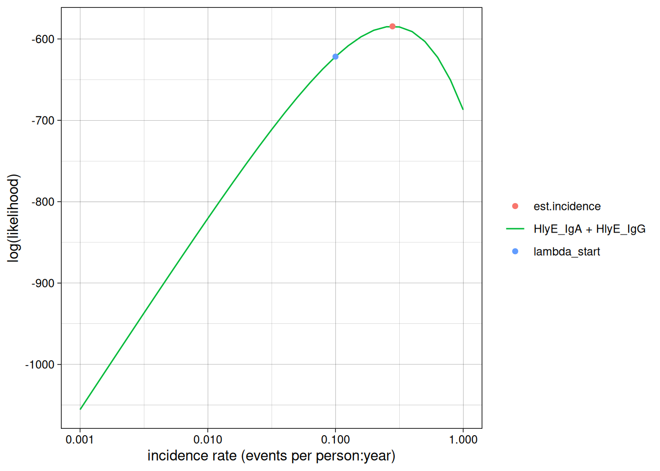 We can calculate the log-likelihood of the data as a function of the incidence rate directly: