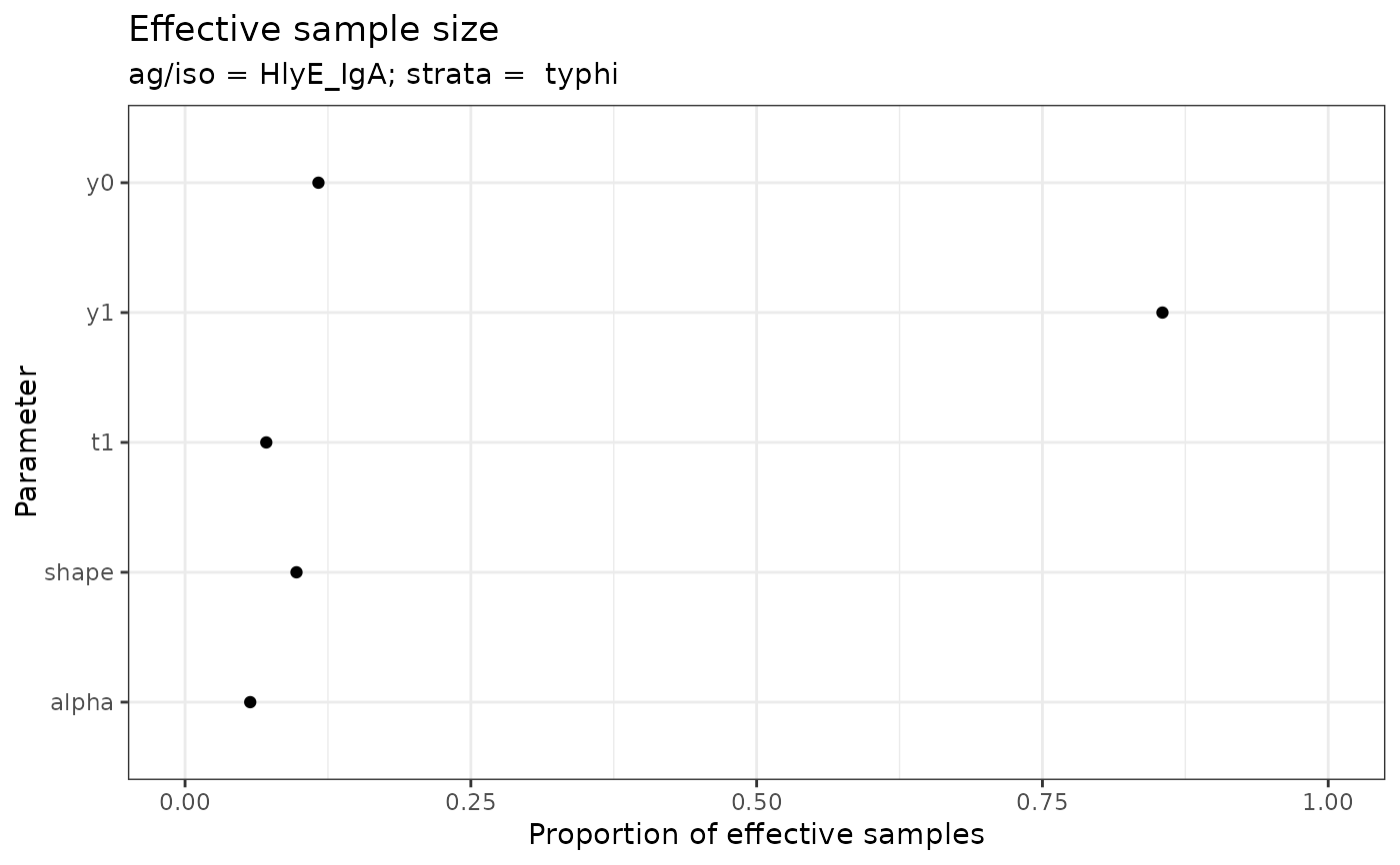 A list of ggplot2::ggplot objects showing the proportion of effective samples taken/total samples taken for all parameter iso combinations. The estimate with the highest proportion of effective samples taken will be listed first.